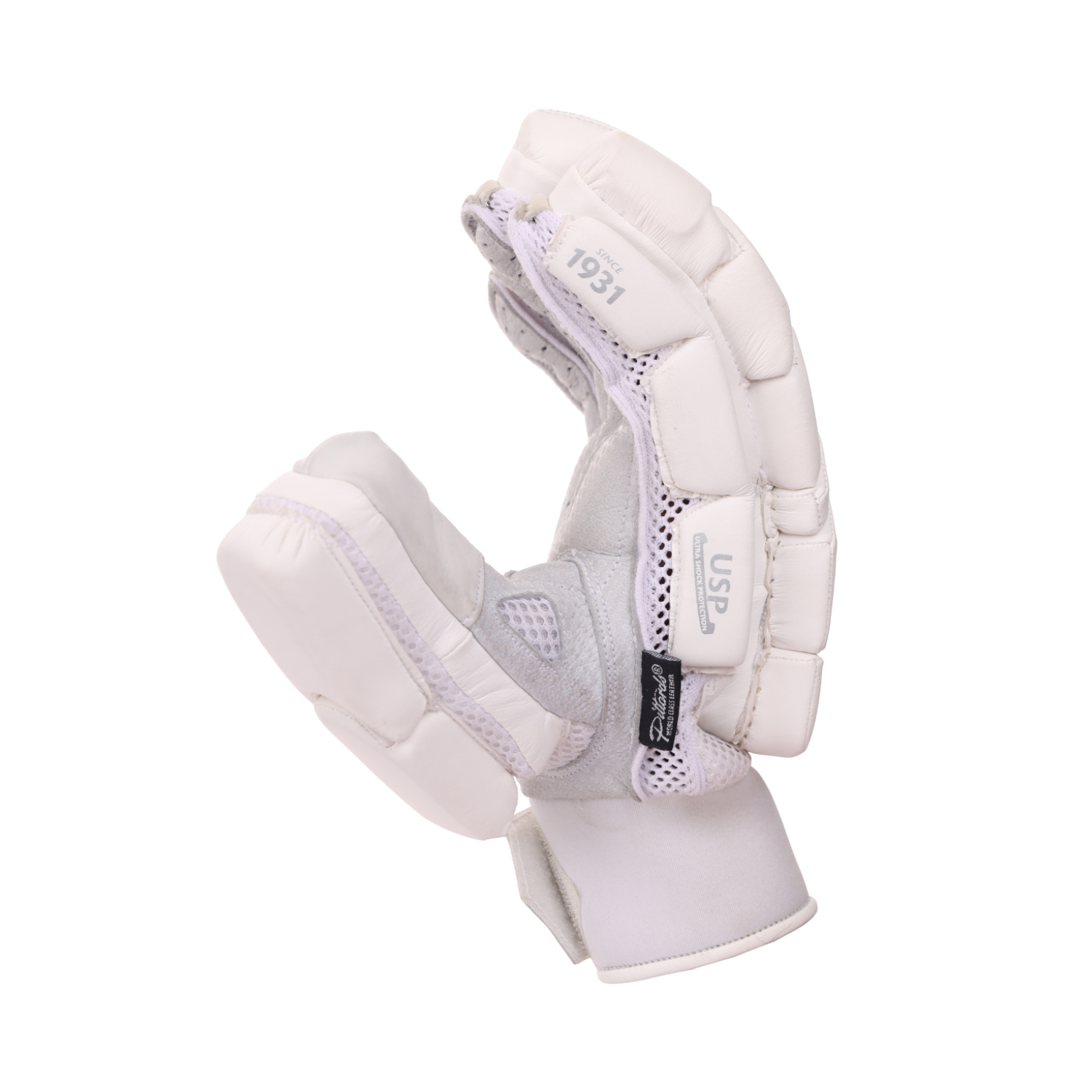 The SG HILITE White Batting Gloves are crafted for cricket players who demand premium quality, superior protection, and unmatched comfort. Featuring a high-quality sheep leather palm, these gloves deliver an exceptional grip and long-lasting durability. The additional leather patch on hard-wearing areas ensures enhanced resilience, while imported PU and lightweight HD foam finger rolls provide excellent cushioning and flexibility. The split thumb and three-piece side bar protection on the bottom hand offer maximum support and safety. The first two fingers of the bottom hand are reinforced with captain plastic, while all other fingers and the thumb feature fiber protection for added durability. Designed with a sponge-padded spacer mesh back, these gloves ensure a snug and comfortable fit, and the nylon gusset promotes ventilation to keep hands cool and dry.